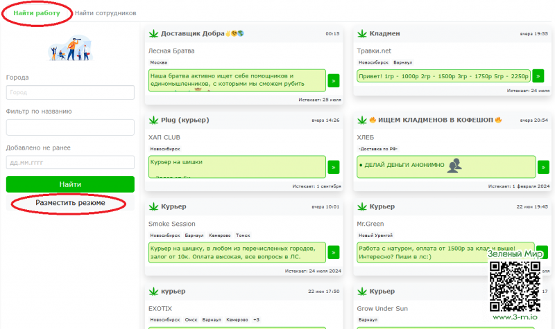 1. Кликнуть на иконку с надписью "Работа", в маленьких экранах отображается только иконка (золотой мешок со знаком "$").