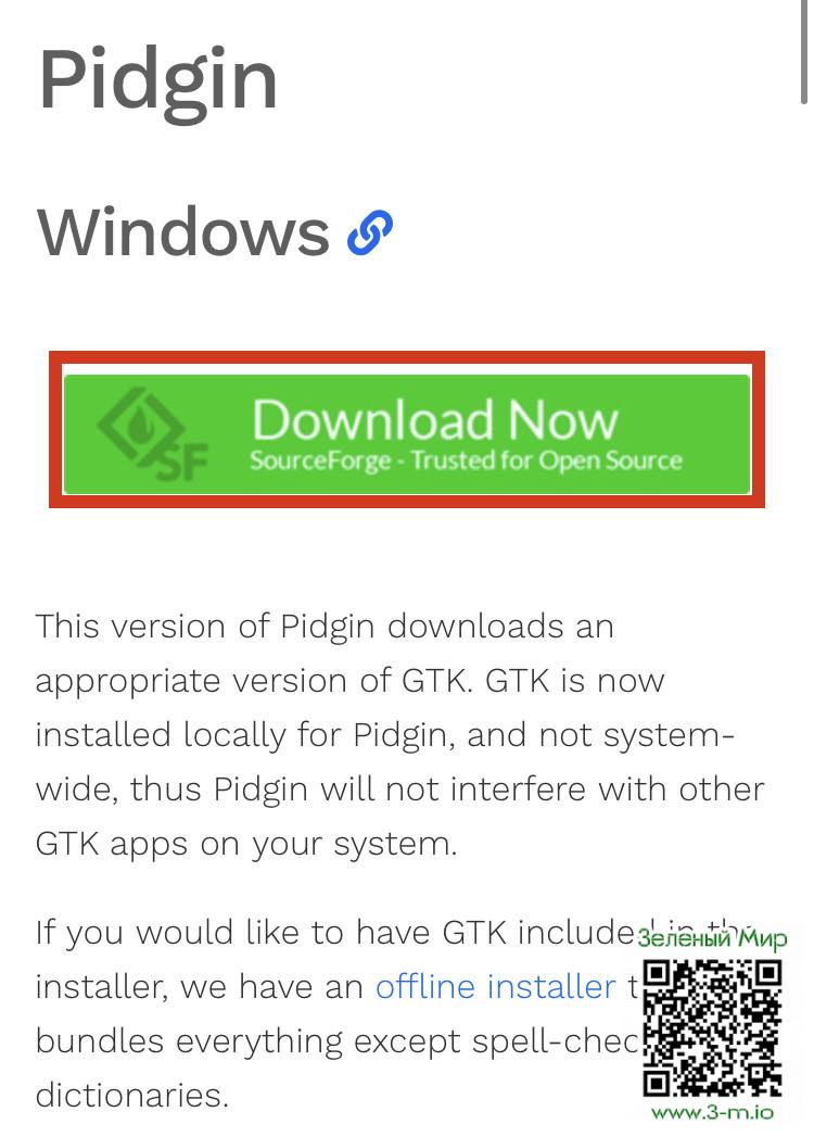 Скачиваем и устанавливаем Pidgin с официального сайта по ссылке: https://www.pidgin.im/install/