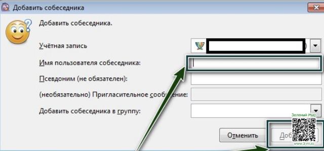 Для этого нам необходимо зажать Ctrl + B, ввести в открывшемся окне имя пользователя собеседника(его жабу) и нажать кнопку "Добавить".
