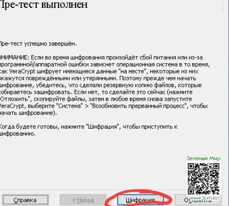9. Проходим тест, после перезагрузки нажимаем «Шифрация» (кривой перевод).