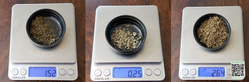 Ice hash — результат с 1 унции шишек. Вот фотографии каждого сорта получившегося Ice hash на весах:
