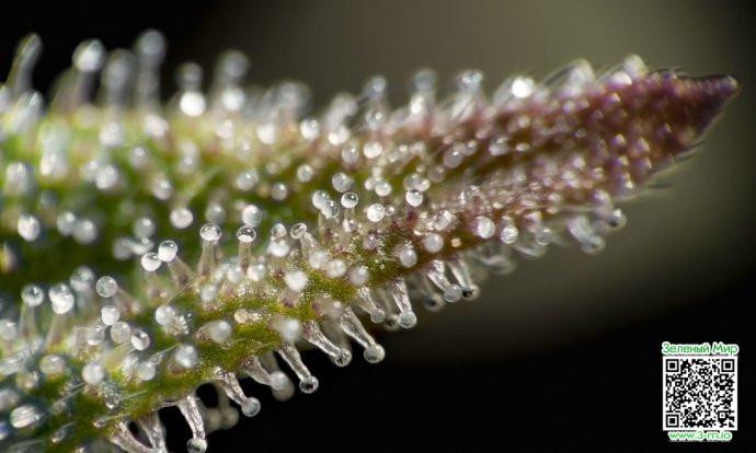 Крупный план трихом на живом растении каннабиса. Практически все виды гашиша изготавливаются из них