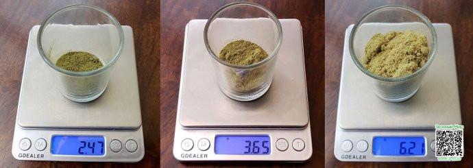 Эффективность. Вес получившегося гаша из одного и того же количества травки.