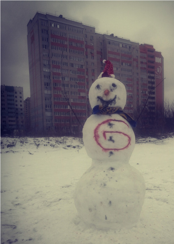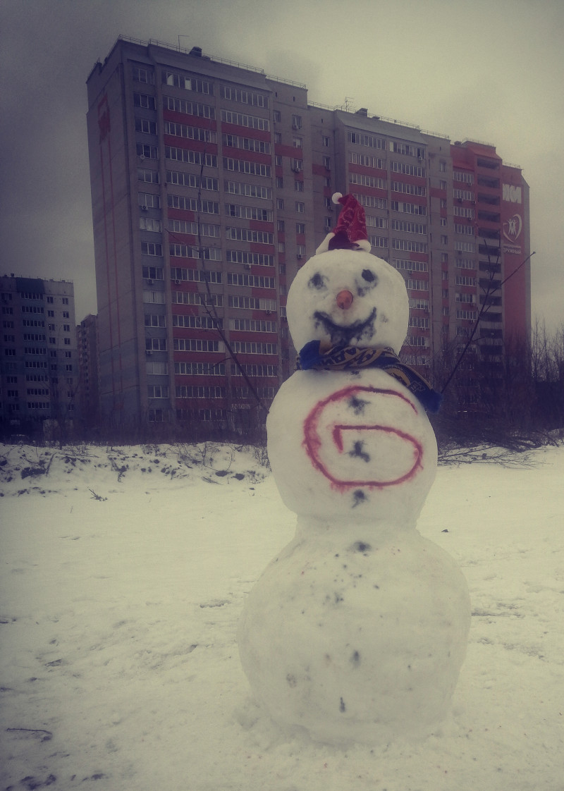 Это первый наш снеговик, зимний работник-бегунок)) кто увидит снеговика с буквой G на пузе, знайте, у него можно замутить бошки и гаш, только они часто невменяемые, разговорить сложно😀