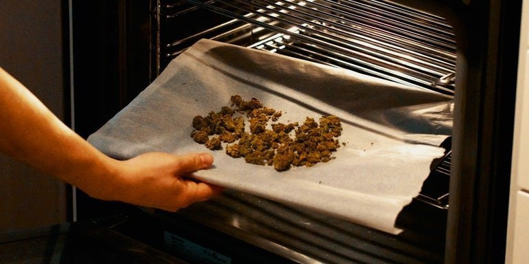 2) Помещаем стафф в предварительно разогретую духовку при 145°C на 7 минут. Так мы будем проводить Декарболизацию. Под продолжительным воздействием термпературы CO2 выходит из стаффа.