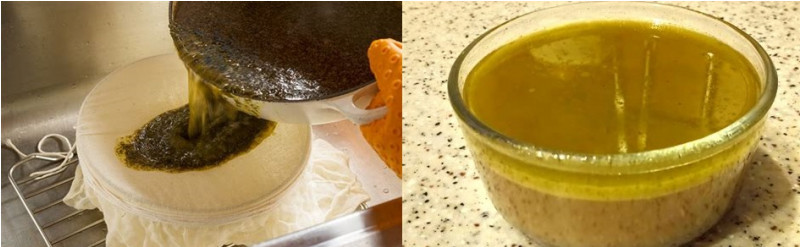 По звершению процесса варки, масло потемнеет и пробретет коричневый оттенок, вы должны убедиться, что вода выкипела и осталось лишь масло, вы поймете это по характерному бульканью а пленка масла давно закроет всю поверхность! Жмых шишек с масла можно не выкидывать, так как он пригоден к пище, а кусочки шишки в еде лишь забавляют в процессе поедания.