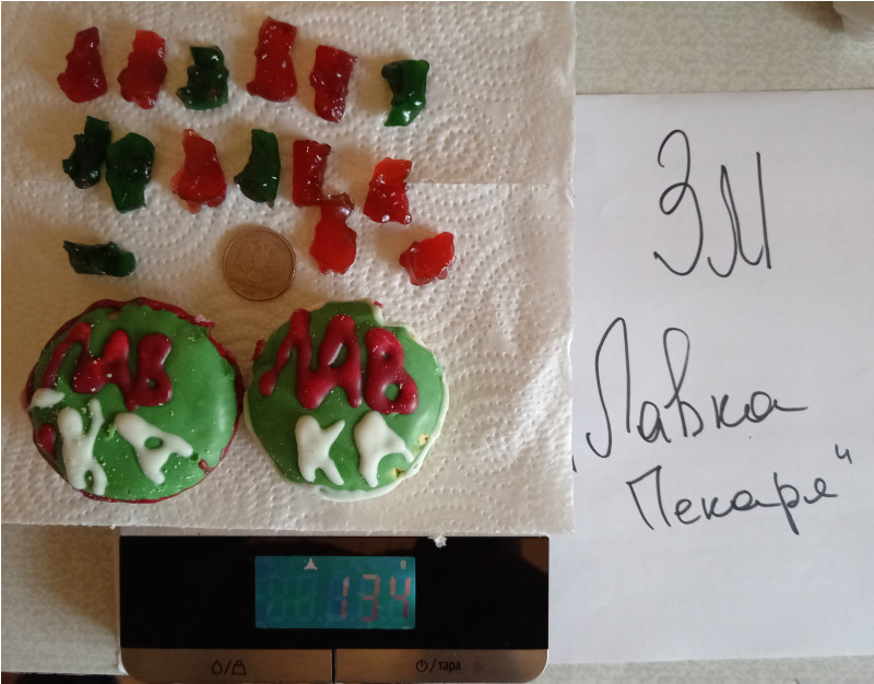 Печенье на вкус сладковато, напоминает песочное по текстуре, суховато на мой вкус. Мишки зачёт по вкусу, консистенция мягкая и липкая.