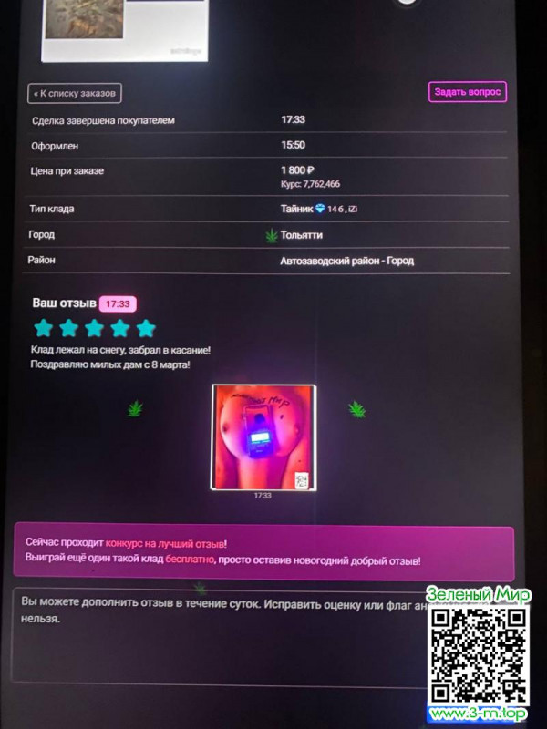 Сделал покупку. Забрал товар. По дороге купил тюльпанов. Подарил. Покурил. Сделали фото. Закрыл сделку и прикрепил фото. Приз уже зачислен. Ровно 1000 рублей! Большая благодарность вам ребята!