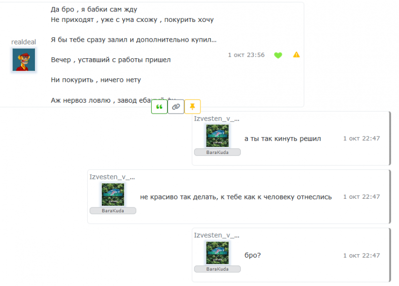 Хочу поделиться про крысёныша realdeal. Всегда всем пишет за пробу, но никогда ничего не покупает ;)