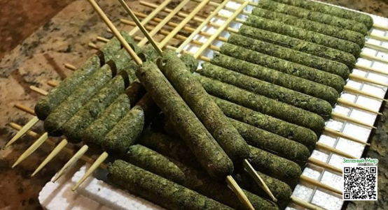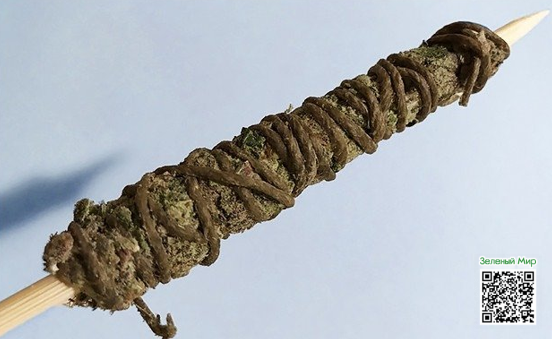 После удаления конопляной нити покройте «сигару» слоем янтарного масла или сахарной воды, а затем заверните всё это в вымытые свежие веерные листья конопли.