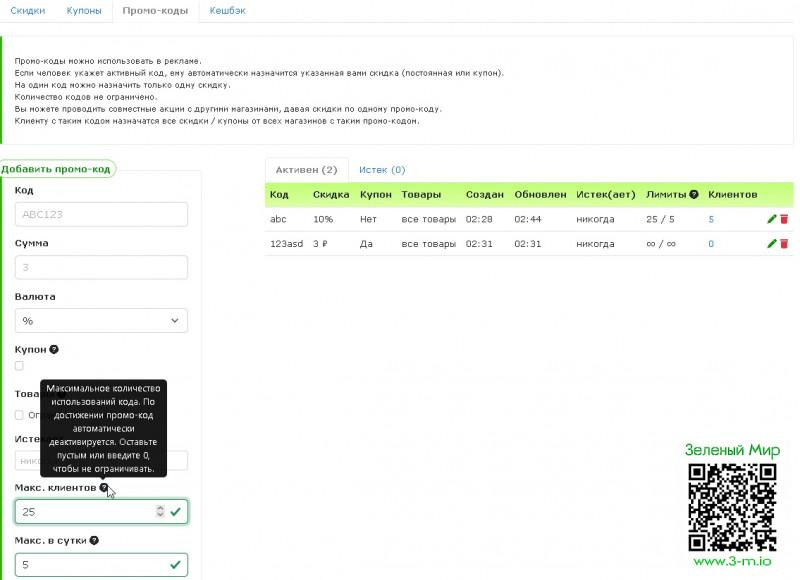 Теперь можно ограничивать макс. количество использований в сутки и вообще.