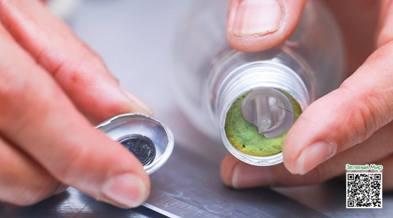 1. С помощью ножниц отрежьте верхнюю часть бутылки, включая горлышко и ту часть, на которую навинчивается крышка. Уберите излишки пластмассы; вам нужно оставить только 2-3 см от резьбы.
