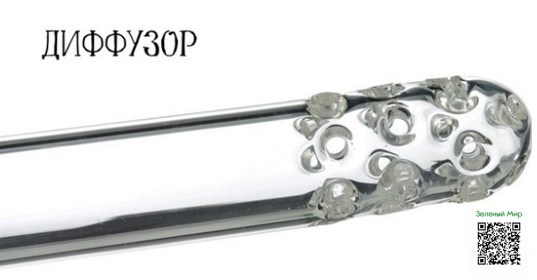 Диффузор представляет собой видоизменённый шлиф. На конце этого шлифа не одно большое отверстие, а много маленьких. Благодаря этому пузырьки дыма получаются намного меньше.