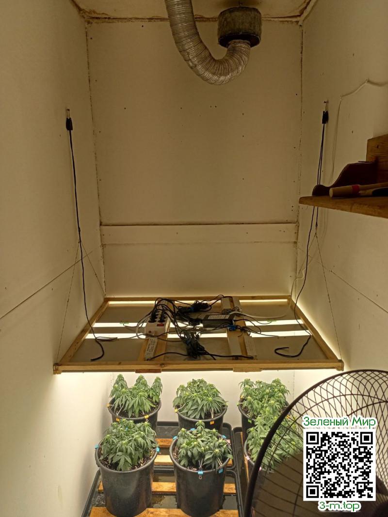 Миникомната 2х1м. Планирую 4 куста следующий гров (6 кустов тяжеловато). Занимаемая площадь под кусты 1х1м. Остальное пространство под хранение расходников. Сейчас лед панели. Собираюсь перейти на днат.