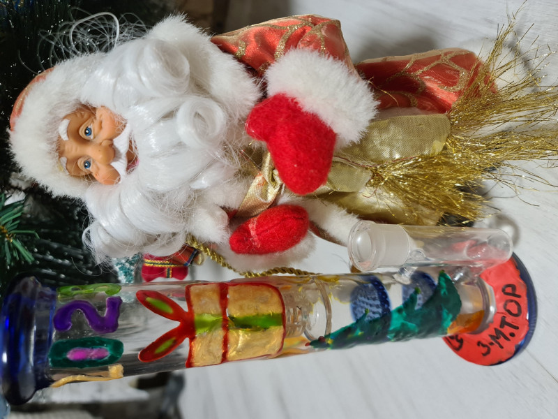 Итак, выкладываю два варианта работ!) Первый вариант - расписной витражными красками бонг! Т.к. бонг круглый и фоткать неудобно, прикладываю работу на пленке, чтоб было видно:) Снеговик держит в руках табличку ЗМ + новогодняя тематика!) И , конечно же, убитый Дед Мороз! Вы только гляньте ему в глаза!))) Второй вариант - Дедушка со своим новогодним фирменным леденцом!) Угадайте из чего сделано!) ВСЕХ С НОВЫМ ГОДОМ! УРААААААААА!)))))))))))