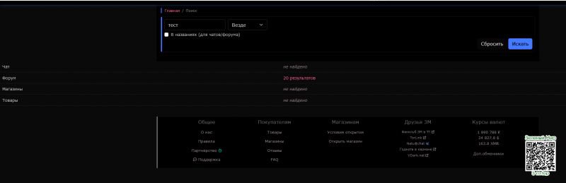 Обнаружил небольшой баг, а именно на странице с результатами поиска по сайту едет вёрстка: на скриншоте "чат, форум, магазины, товары" улетели куда-то налево за пределы границ основного поля сайта.