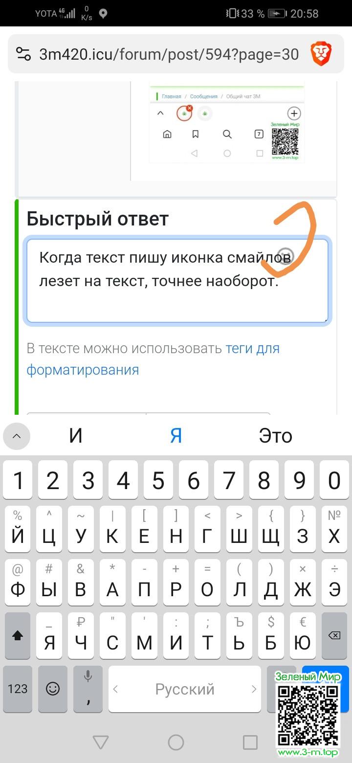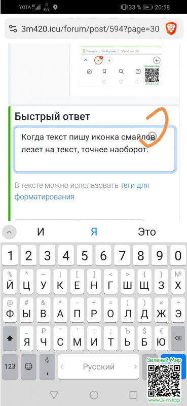 Когда текст пишу иконка смайлов лезет на текст, точнее наоборот.