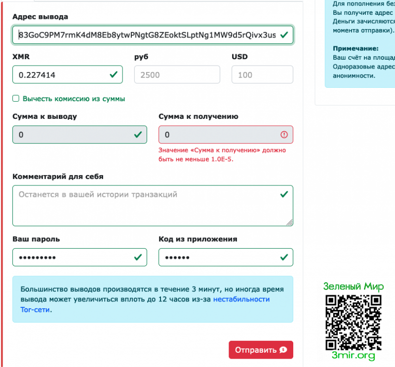 1) Когда пишешь значения суммы BTC/XMR окошечки РУБ и USD почему-то не авто-заполняются, хотя раньше всё было.
