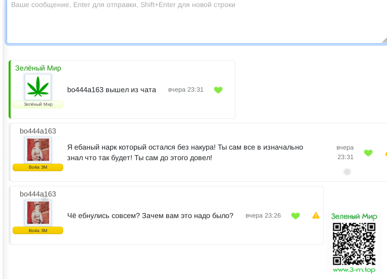 bo444a163, какую доброту, нам вообще на тебя по**й))) ты танцуешь за грамулю в долг, лучшие кенты, что то пошло не так сразу в курилку нанывать бежишь и не знаешь к кому податься и нажаловаться чтоб пригрели душонку твою продажную) тут нанывать нехуй всем, кто хочет тот берет, мы с ровными ребятами всегда по ровномв уже третиий. твой отзыв за грамм нам плохого не сделал, а твоя личность упала ниже плинтуса для нас всех. и друзей тут у тебя нет. Просто клоун танцующий на задних лапах за кропалик. С тобой дел больше иметь не хотим. И ныть в курилке нехуй , крысиный поступок с твой стороны. Более считаю диалог не конструктивным , о тебе и так все понятно. Удачи. и не**й в друзья к нам было лезть.